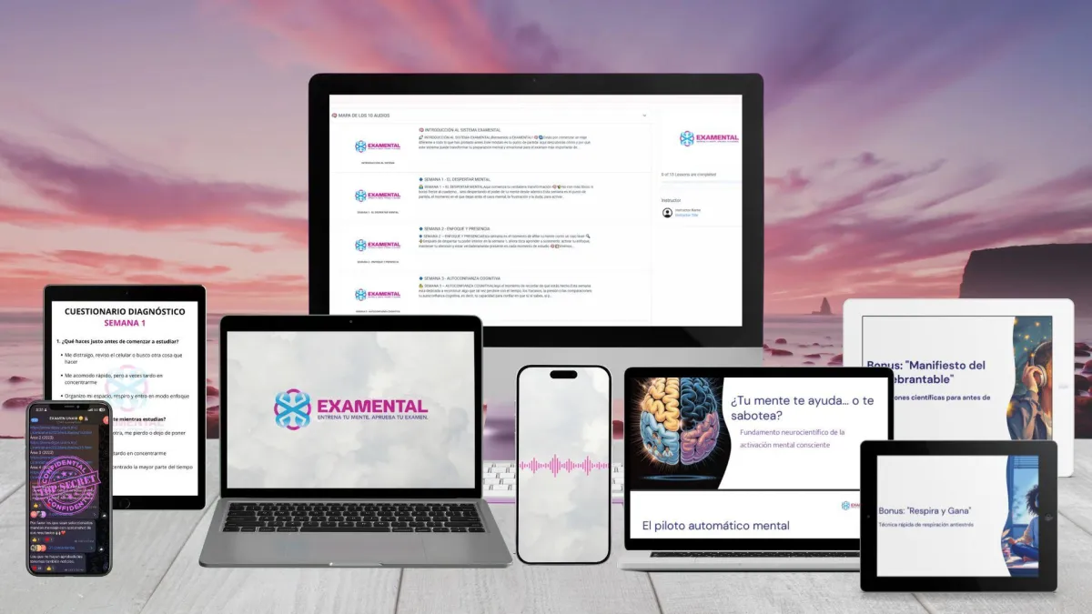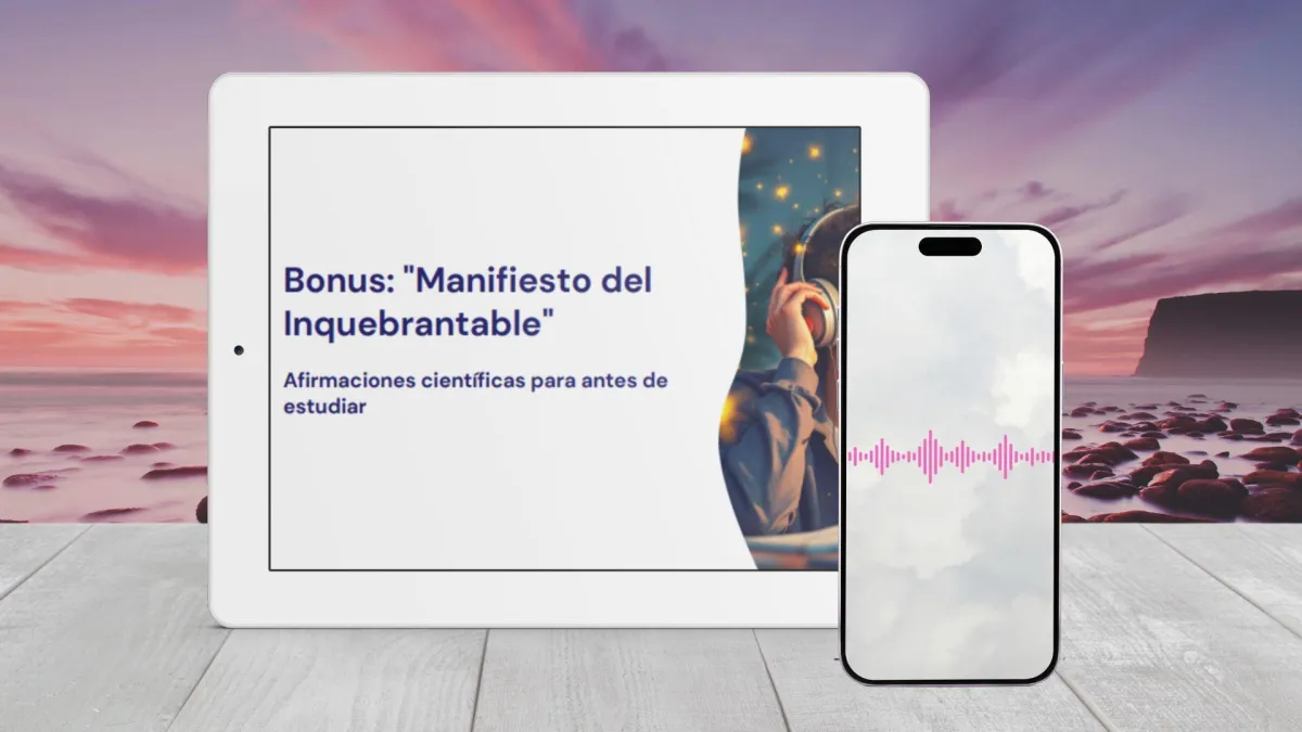 Es un sistema de audios con hipnosis guiada para entrenar tu mente y rendir al máximo en exámenes.